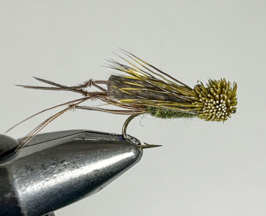 Most of my hopper fishing is done with two through four weight outfits. Rod weight and length are determined by the stream I’m on and sometimes wind conditions. Most of the time, my leaders are in the nine-foot range and usually tip out at 4X. Decades ago, when I started my fly fishing journey, there seemed to be four main hopper patterns. Joe’s hopper, the Gartside hopper, Ed Shenks Letort hopper and a Mike Lawson pattern called the Henry’s Fork hopper. Eventuall,y foam patterns took over the world and choices of body colors resembled a box of crayons, the large one with the crayon sharpener. As mentioned in a previous post I’m not a big fan of foam patterns on our smaller spring creeks. I prefer patterns that sit in the film, thus my long-time favorite has been the Letort hopper. It rides low and, in my opinion, offers a better hooking percentage. I also like this pattern because it’s fairly easy to tie and uses a minimum amount of materials. The only change I’ll make to it, on occasion, is to add some knotted pheasant tail leg off of the bend of the hook. I like the way they trail in the water, behind the fly. Again, the choice is yours, there’s no shortage of patterns to choose from.